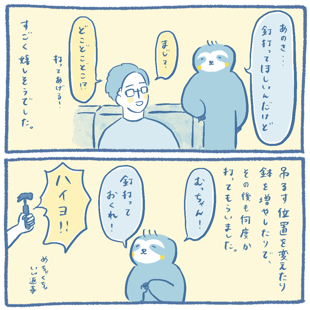 DIY② 〜釘〜 2022.07.19 日常漫画 二人暮らし 本編 広告 あとがき インスタの過去投稿「DIY②」のリメイクです。 私のほうはしばらく賃貸に住んでいた身なので 釘ってそんなに気軽に打つものなの??って感じで 和室の釘ゾーンには軽く引いてました(笑) 今後の話にもちょいちょい釘出てきます。 0 コメントはこちら 同じカテゴリの記事 【PR】YUEヘッド鍼灸マッサージに行ってきたレポ 【PR】やってよかった眉アートメイク 断乳できない 前髪とスッピンと私 【PR】アートメイクレポ・迷子の眉毛をプロにお任せしてみた結果 ふるさと納税で失敗した話 メガネ屋で起こった悲劇 絶妙に目が悪いあるある たこ焼き② たこ焼き① 暑さ対策④ おすすめYouTubeチャンネルの話 めっちゃ厳しいじーちゃんにタトゥー入れた報告する①② 定期的に汚れる黒パーカーの謎が解けた話 出汁ダイエットその後 ダイエットとか茶番とか うまみちゃんとオフ会とピーナッツバターと担々麺 続・乳歯が抜けた話 ※成人男性 乳歯が抜けた話 ※成人男性 つまようじじゃダメなん? デカ盛りチャレンジ 牛丼 デカ盛りチャレンジ スープカレー 垢バレ後の誕生日 うーちゃん 若返りスプレー 植物の話 ハムとアテレコ 他 ハムとキウイ ハムハム8 〜ついに〜 ハムハム7 〜在宅とハム〜 ハムハム6 〜防音対策〜 ハムハム5 〜変化〜 ハムハム4 〜噛みぐせ〜 ハムハム3 〜命名〜 ハムハム2 〜出会い〜 ハムハム1 あの歌 ゲームの話 マイクラ脳 2月14日 黒歴史 ツッコミ不在 ハムとアレクサと反抗期 おうちスマート化計画 アレクサ、履歴残ってるってよ 【日記】はせがわじゅんさんと飲んだよ 献血レポ2022〜後半〜 献血レポ2022〜前半〜 くさや処理班 ヤクルト1000がどうしても飲みたかったのでヤクルトセンターまで買いに行った話② ヤクルト1000がどうしても飲みたかったのでヤクルトセンターまで買いに行った話① よく眠れるアプリを試してみたら… 献血レポ2021 めっちゃいい匂いする会社の先輩に柔軟剤何使ってるか探り入れた結果&絵日記のこと 暑さ対策③ 暑さ対策② 暑さ対策① 部屋干し DIY③ 〜家具組み立て・分解〜 DIY② 〜釘〜 DIY① 〜壁〜 おっちゃんです 前の記事 DIY① 〜壁〜 2022.07.18 次の記事 DIY③ 〜家具組み立て・分解〜 2022.07.20 アプリなら通知ですぐ読める! NAPBIZブログ