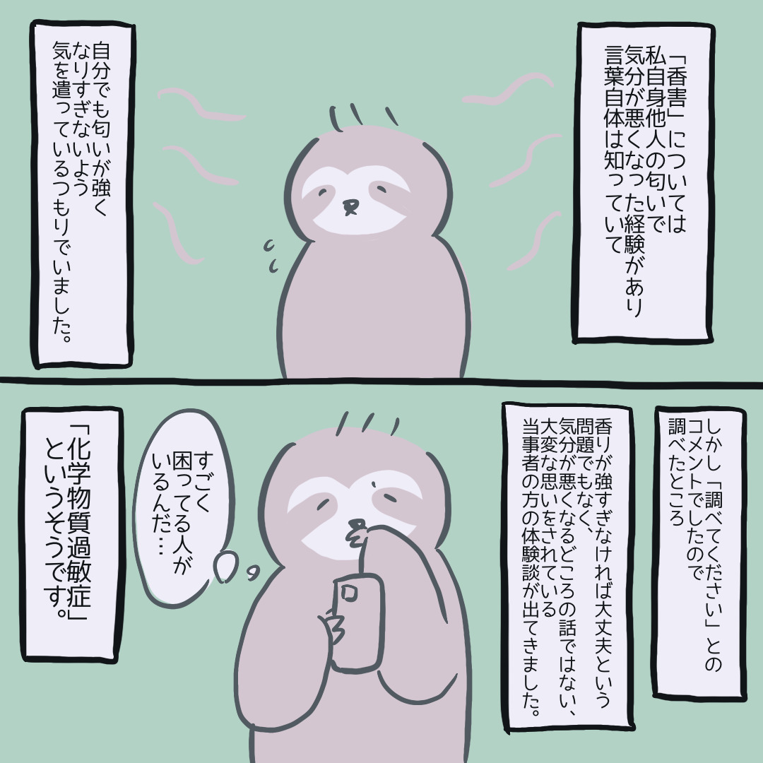 柔軟剤投稿に責任を持って、香害という言葉も合わせて発信しておこうという気持ち3割、