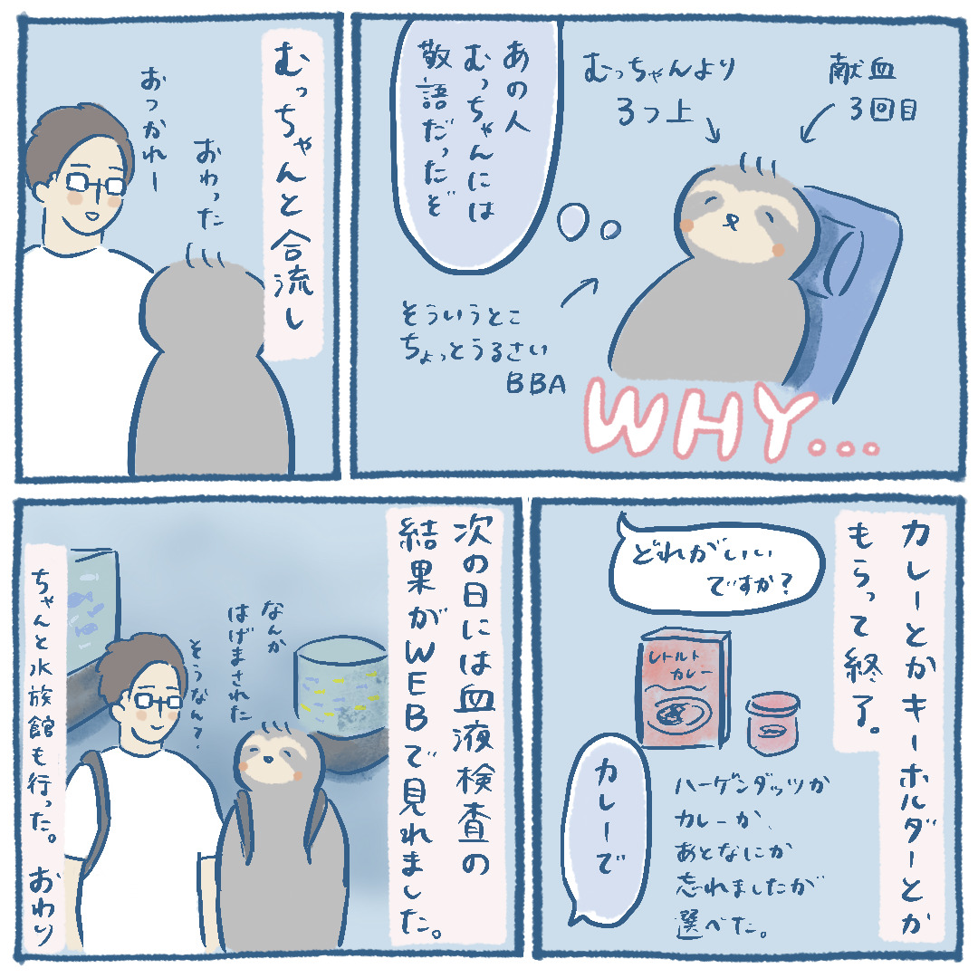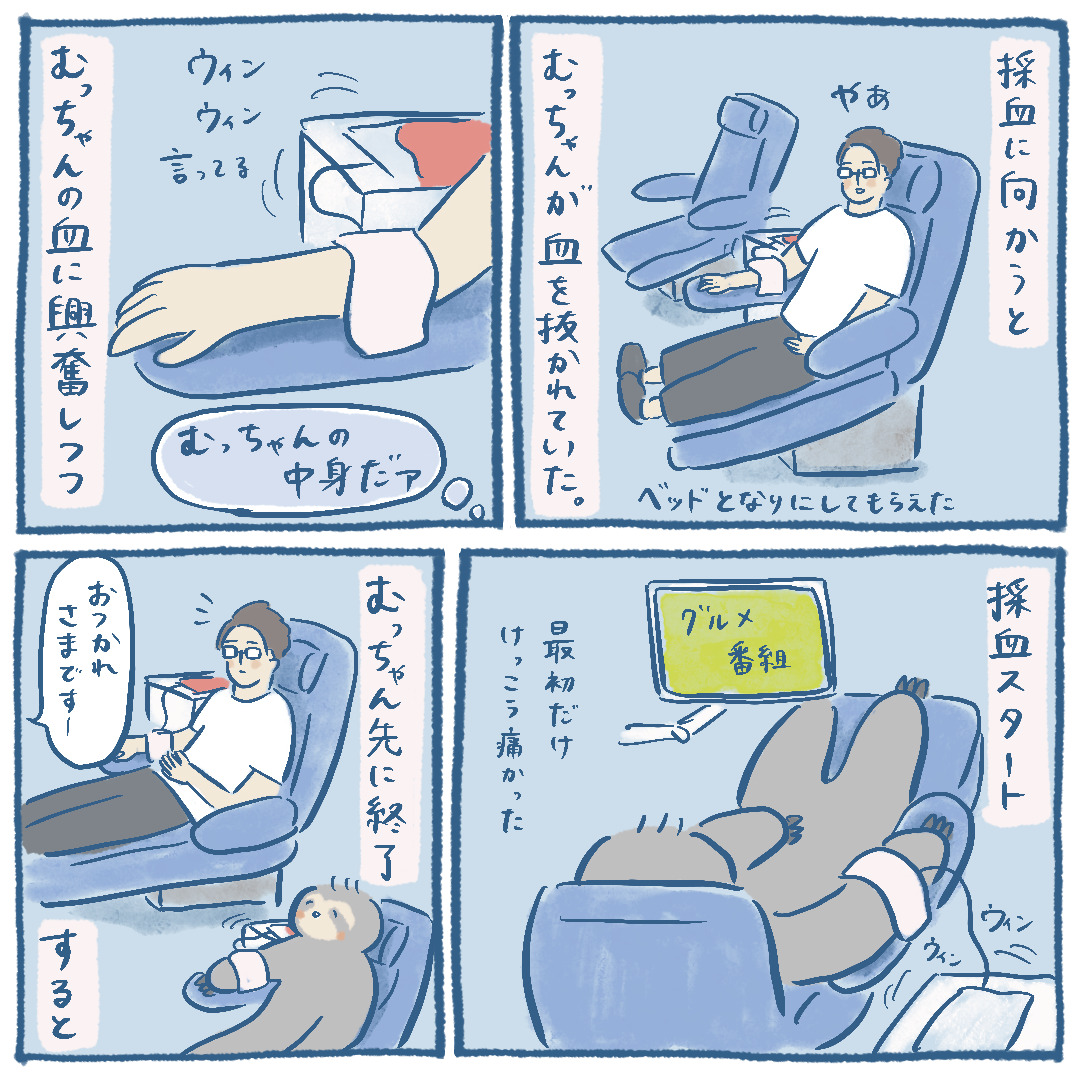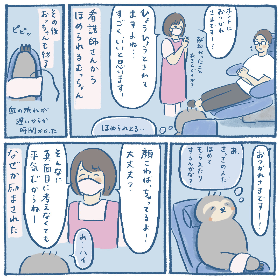 むっちゃんに比べたら献血経験者だし、「緊張してませんよ、余裕ですよ…」くらいの気持ちで挑んだのでなぜ私だけ励まされたんだろうと思ったのですが、