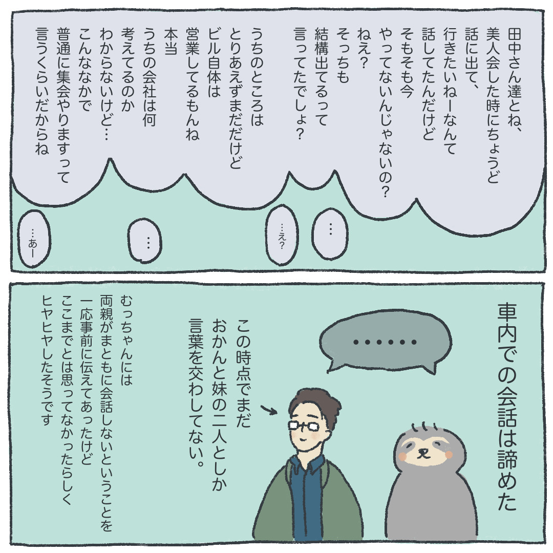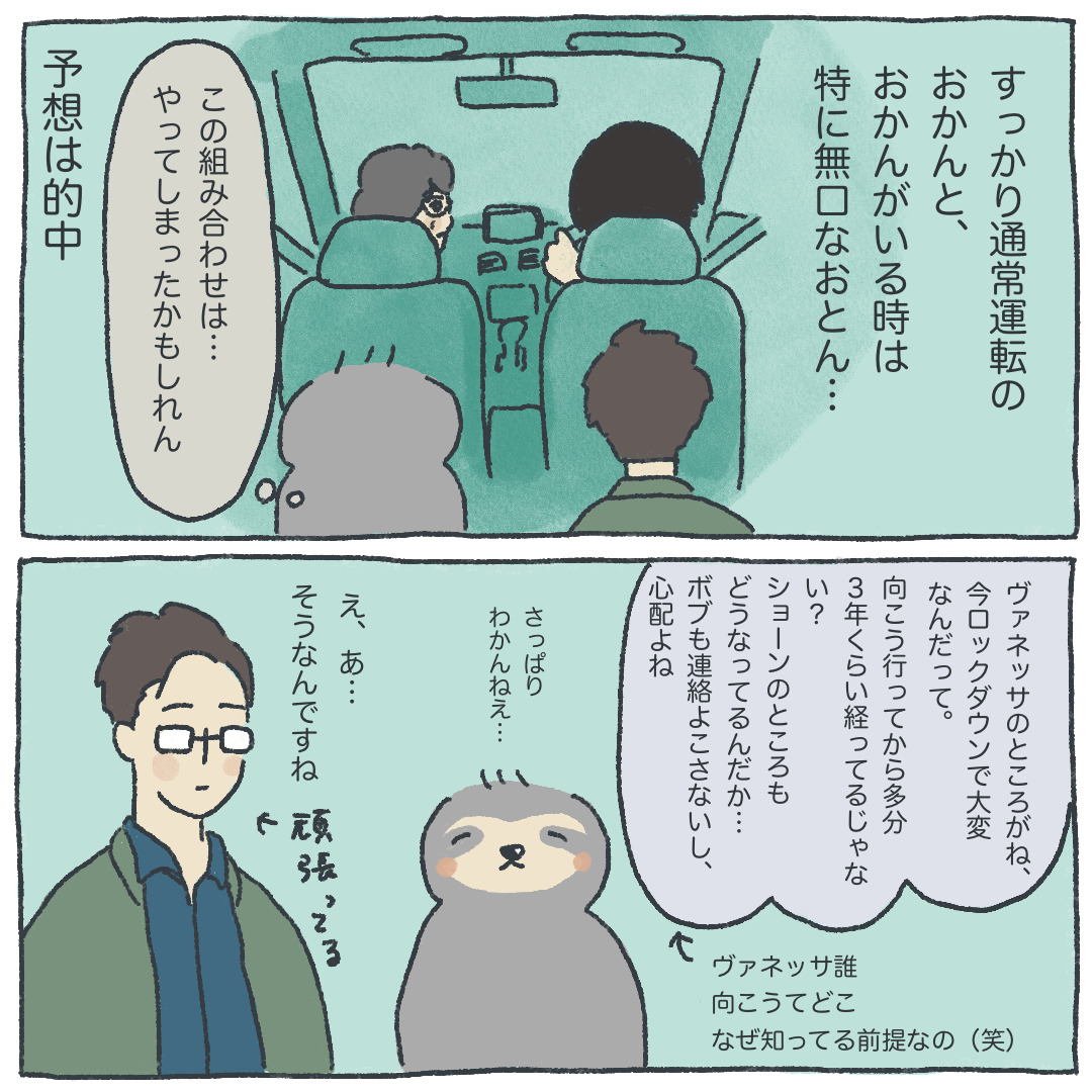 実家訪問【4】 2023.01.31 実家訪問 Tomoya., ぱっさん, 家族 前回の話 実家訪問【3】 本編 広告 あとがき 前回に引き続きやばい奴しかいない…この時はぱっさんも静かだった。 単体で話せば全員そこまでおかしくはないはずなんですが、集まるとどうしてもこうなります。 むっちゃんも困惑してた。カレーは美味しかったです。 おわり 0 コメントはこちら 同じカテゴリの記事 実家訪問【6】 実家訪問【5】 実家訪問【4】 実家訪問【3】 実家訪問【2】 実家訪問【1】 前の記事 実家訪問【3】 2023.01.29 次の記事 実家訪問【5】 2023.02.02 アプリなら通知ですぐ読める! NAPBIZブログ