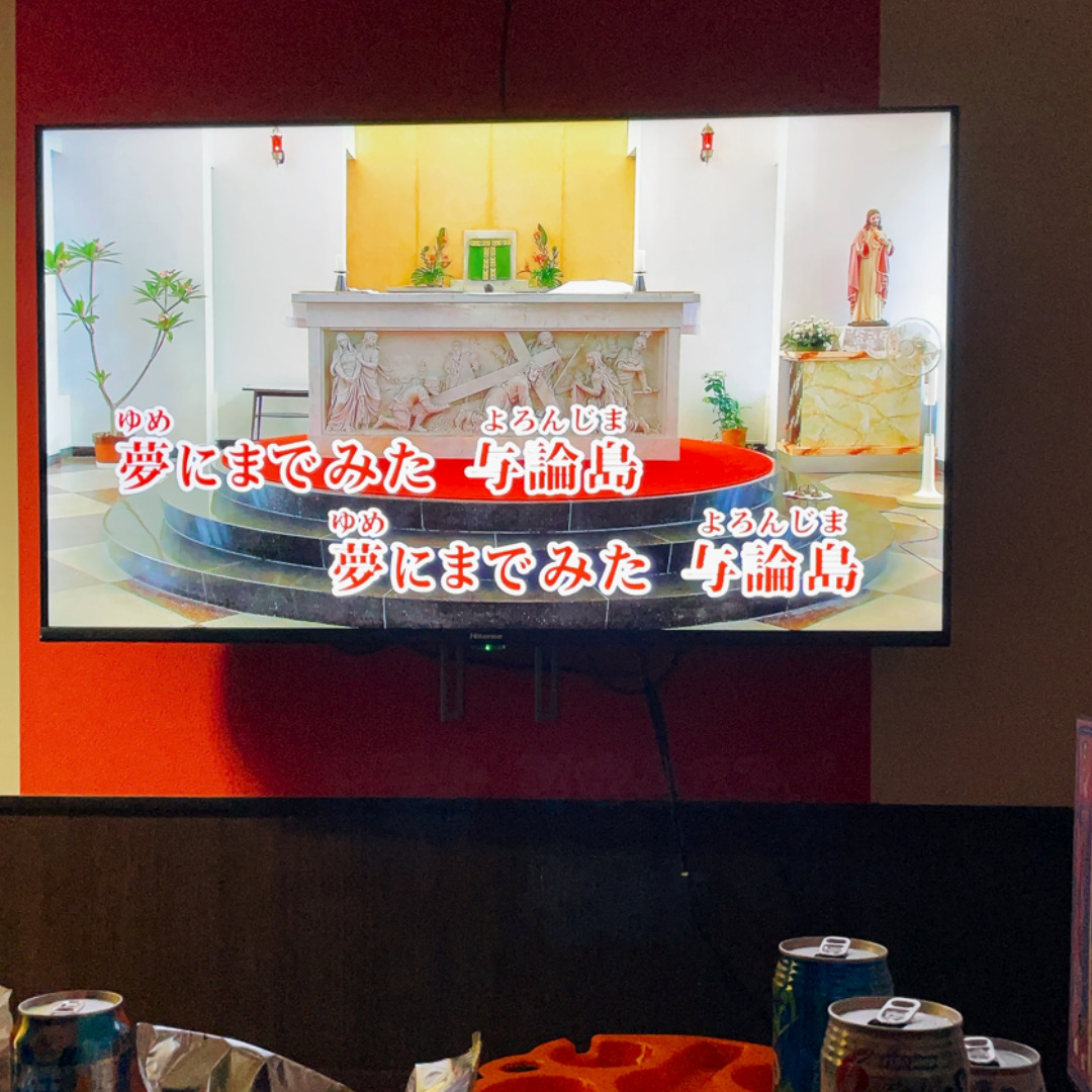 帰宅後、むっちゃんのカラオケレパートリーに「与論慕情」が加わった…