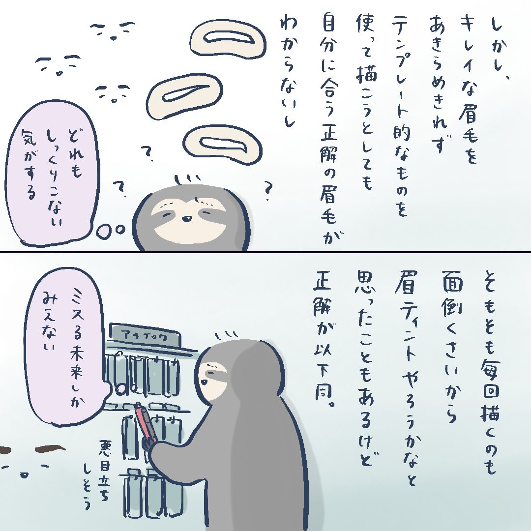 眉毛ひとつで顔が変わるって言うし、眉メイク極めたらおしゃれな顔になれるみたいなんですが流行に合わせてちょっと太めに描いてみるとか平行にしてみるとか眉尻伸ばしてみるとか、そういうアレンジする以前に自分に似合う眉毛がわからず😇