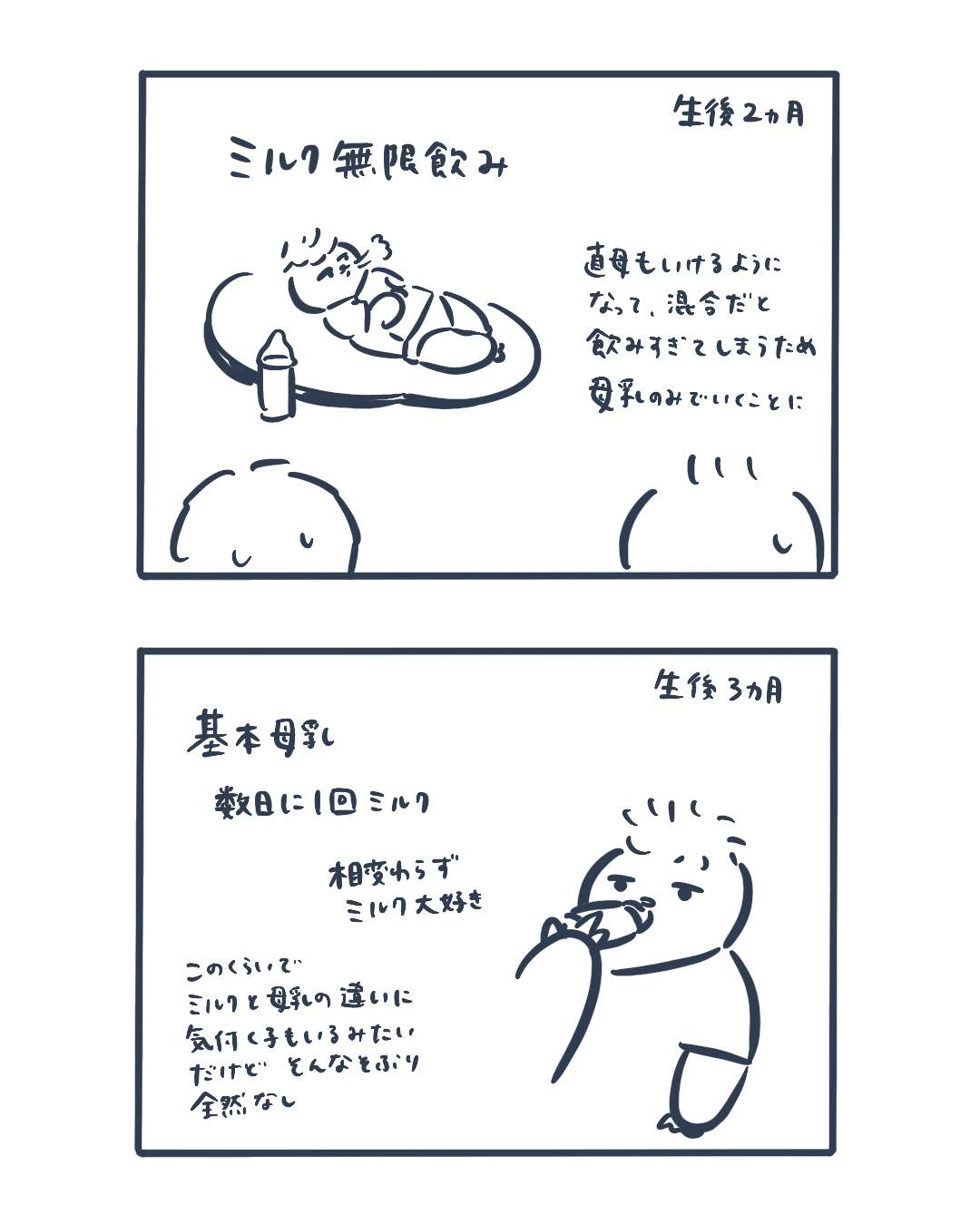 正直ぽっさんは親に似て違いのわからない子だと思っていたため、気づいたか〜そうか〜と一瞬嬉しかったんですが、預けたい機会も増えてきて、もう母乳拒否されて寂しいとか言わないからまじで飲んでくれと思います…親の勝手で悪いけど…笑